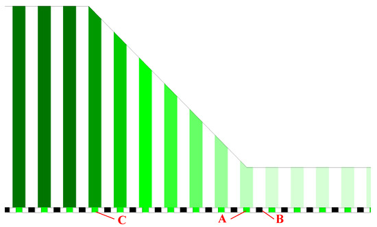 (1) In sections A and D, the EPA shape is not significantly changed as the terrain is horizontal and flat. Therefore, the pillars under these sections are not affected by terrain effects, and Ki in Equation (7) is 1.