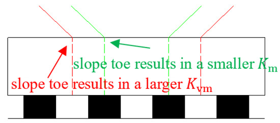 will be larger if the slope toe lies between two adjacent pillars (the red lines in