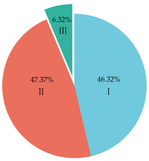 The proportion of three categories of CBL samples: (I) strong; (II) weak; (III) none.