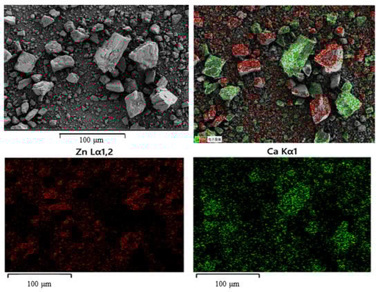 SEM-EDS pictures of flotation concentrate of the mixed mineral of smithsonite-calcite.