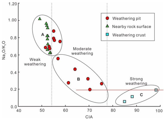 - When assessing the chemical characteristics of weathering pits, the rock surfaces adjacent to the pits cannot be regarded as the parent rocks of the pits. This is because the rock surface next to the pits is also weathered and generally has higher CIA values than local parent rock.