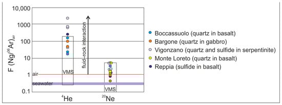 - Kiss, G.B. Fluid inclusion study of the Boccassuolo VMS-related stockwork deposit (Northern Apennine ophiolites, Italy). Geol. Croat. 2015, 68, 285–302. [Google Scholar] [CrossRef]