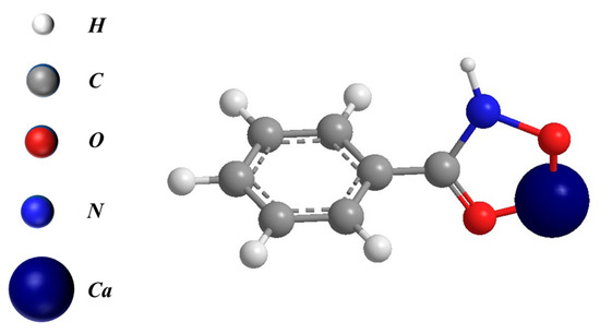 Benzohydroxamic acid (BHA) chelation of Ca to form a five-membered ring.