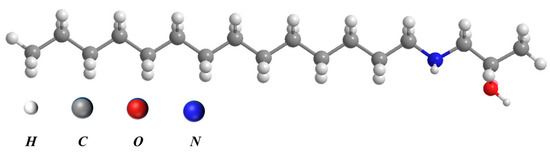 An obvious problem with cationic collectors is their poor solubilities. To improve the solubilities of amine collectors, Liu et al. [82] introduced hydroxyl groups into the long-chain amines and synthesized a new collector named hydroxypropylamine (NTIA), as shown in Figure 13. In single-mineral flotation experiments, the flotation recovery of scheelite reached 96.89%, while that of calcite was only approximately 10%. The agent mainly interacted with the mineral surface through electrostatic and hydrogen bonding.