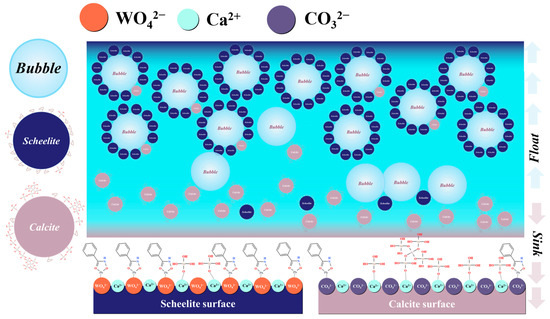 - Guan, Z.; Lu, K.; Zhang, Y.; Yang, H.; Li, X. Mechanism of manganese ion interaction with the surface of scheelite and calcite and its effect on flotation separation. Colloids Surf. A Physicochem. Eng. Asp. 2022, 648, 129397. [Google Scholar] [CrossRef]