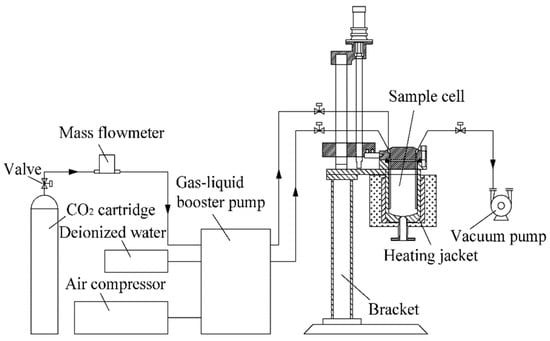 The ScCO2–H2O treatments of the coals were completed in a high-pressure reactor. The specific experimental conditions and materials are listed in Table 2. Figure 2 presents a schematic of the reactor used herein. The reactor can simulate the temperature and pressure conditions (P < 35 MPa; T < 200 °C) of the deep coal seam to ensure that CO2 is in a supercritical state to form the ScCO2–H2O–coal reaction system.