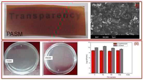 - Zhang, M.; Chen, H. Development and Characterization of Starch-sodium Alginate-Montmorillonite Biodegradable Antibacterial Films. Int. J. Biol. Macromol. 2023, 233, 123462. [Google Scholar] [CrossRef]