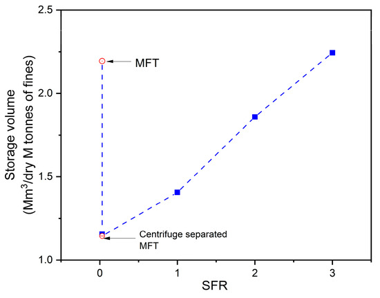 Storage volumes to contain 1M tonnes of dry FFT at varying SFR.
