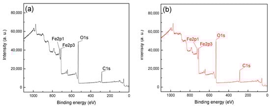 XPS spectra of hematite (a) before and (b) after treatment with CTAC.