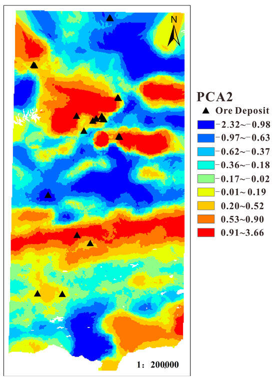 PCA2 factor score plot after reclassification. Note: These ore spots are gold ore spots and gold mineral occurrence.