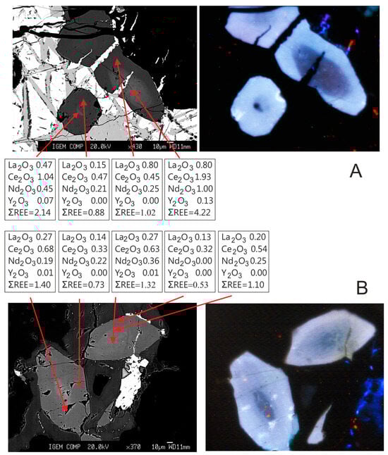 Apatites were studied using microprobe (Table S1) and LA-ICP-MS analyses (Table 4) and cathodoluminescence (CL) imaging (Figure 5 and Figure S1–S4).
