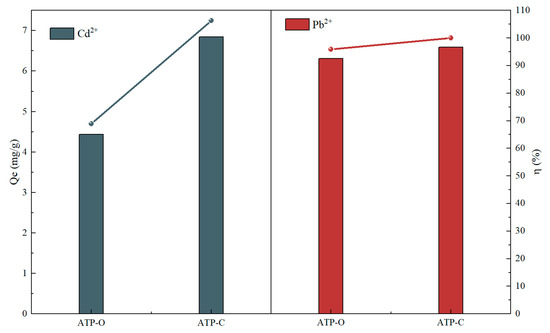 Adsorption of Cd (II) and Pb (II) by ATP-O and ATP-C.