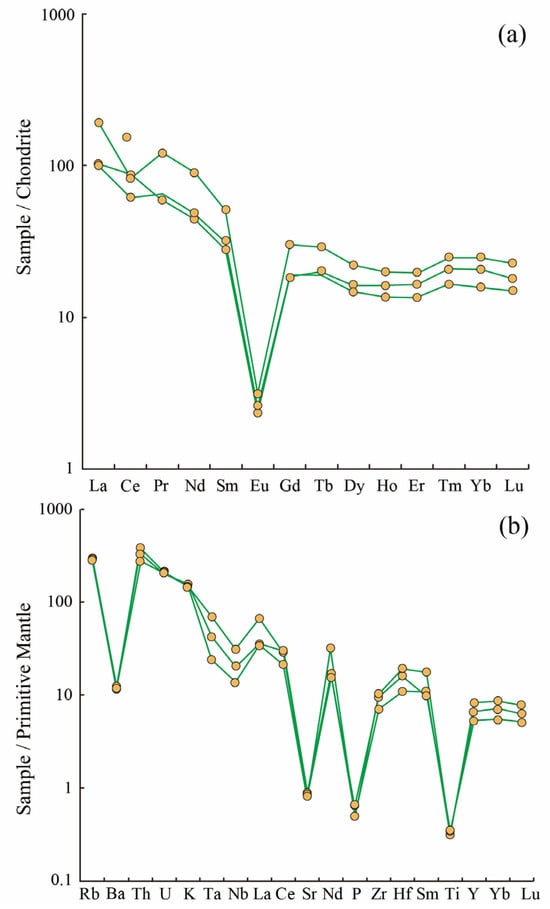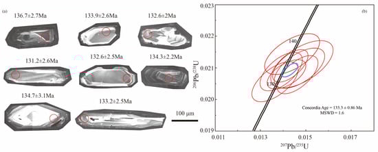 4.2. Zircon U–Pb LA–ICP–MS Results of Granite Porphyry
