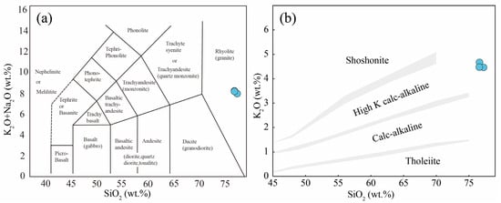 - Le Maitre, R.W.; Batemsn, P.; Woolley, A.R.; Zanettin, B.; Dudek, A.; Keller, J.; Le Bas, M.J.; Sabine, P.A.; Schmid, R.; Sorensen, H.; et al. A Classification of Igneous Rocks and Glossary of Terms: Recommendations of the IUGS Subcommission on the Systematics of Igneous Rocks; Blackwell Scientific Publications: Oxford, UK, 1989; Volume XI-193, ISBN 0-632-02593-X. [Google Scholar]
