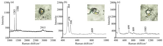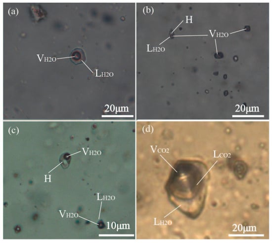 3.4. Fluid Inclusion Microthermometry and Laser Raman Microprobe (LRM) Analyses