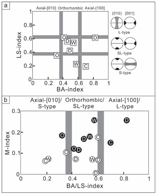 - Ulrich, S.; Mainprice, D. Does cation ordering in omphacite influence development of lattice-preferred orientation? J. Struct. Geol. 2005, 27, 419–431. [Google Scholar] [CrossRef]