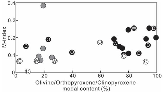 - Ionov, D.; Chanefo, I.; Bodinier, J. Origin of Fe-rich lherzolites and wehrlites from Tok, SE Siberia by reactive melt percolation in refractory mantle peridotites. Contrib. Mineral. Petrol. 2005, 150, 335–353. [Google Scholar] [CrossRef]