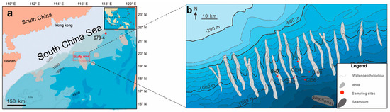 Location of study sites in this study (modified after [47]). (a). The location of the South China Sea. (b). The location of the Shenhu gas hydrate region and study sites.