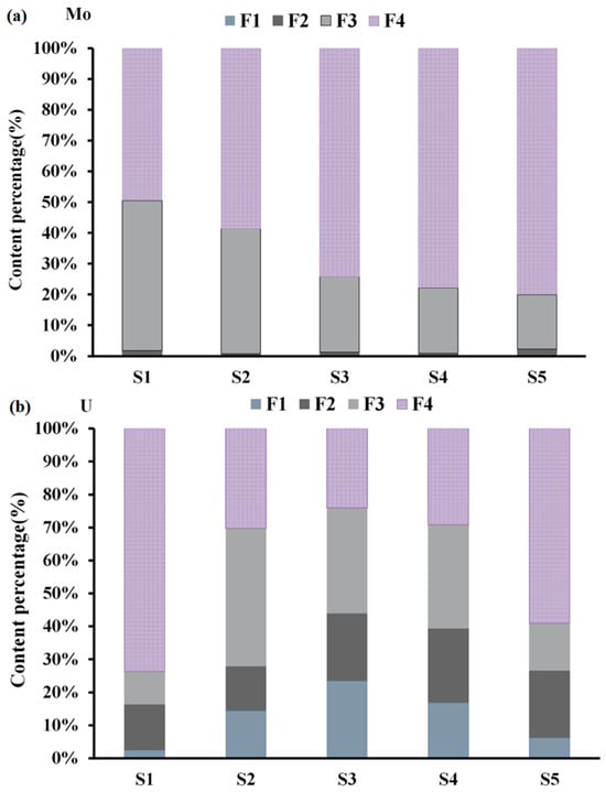 Speciation distribution of (a) Mo and (b) U in Wenyu River sediments.