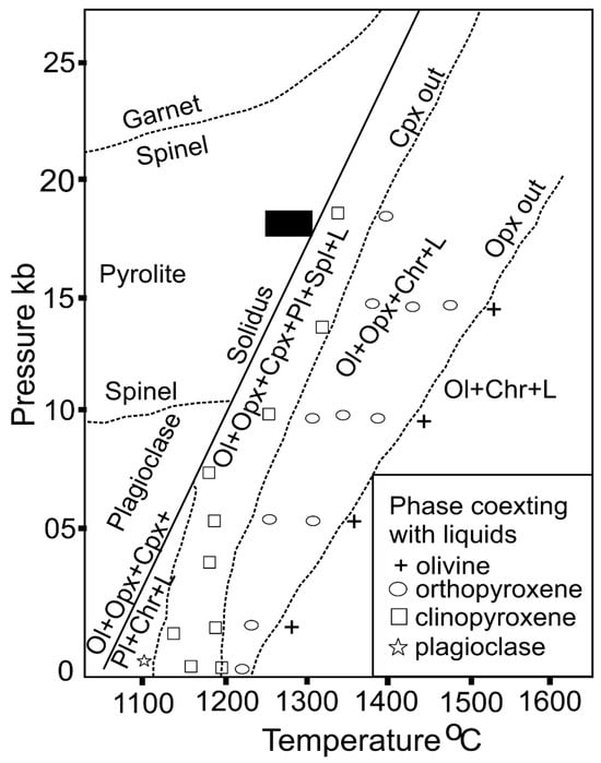 - Jaques, A.L.; Green, D.H. Anhydrous melting of peridotite at 0–15 kb pressure and the genesis of tholeiitic basalts. Contrib. Miner. Petrol. 1980, 73, 287–310. [Google Scholar] [CrossRef]