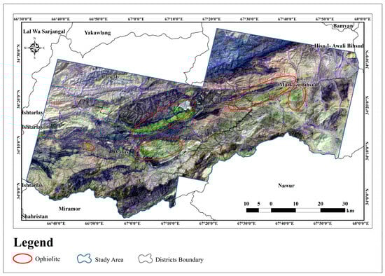 - Khan, S.D.; Mahmood, K.; Casey, J.F. Mapping of Muslim Bagh ophiolite complex (Pakistan) using new remote sensing, and field data. J. Asian Earth Sci. 2007, 30, 333–343. [Google Scholar] [CrossRef]