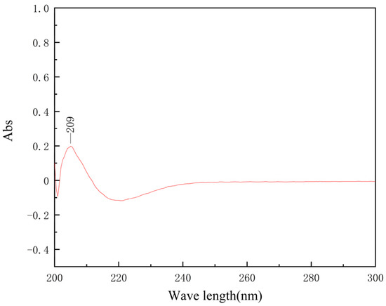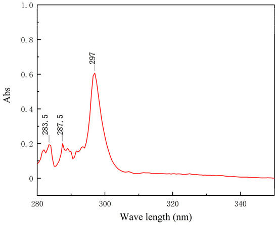 To further prove that Triton X-114 can extract aluminum glutamate from the rare earth solution, UV spectroscopy was conducted on the organic phase after the extraction of aluminum glutamate. Triton X-114 was used as the blank solution, and the extracted organic phase was taken as the test solution. The UV absorption spectrum obtained is shown in Figure 15.
