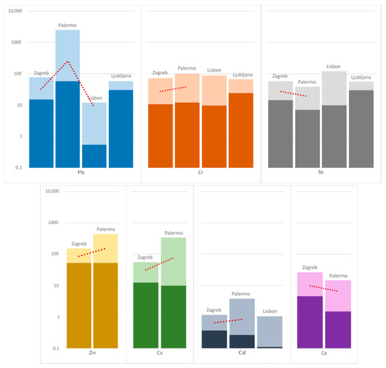 | Element/City | Zagreb—Current Study | Palermo [39] | Lisbon [40] | Ljubljana [40] | World Average (16 Cities) [40] |