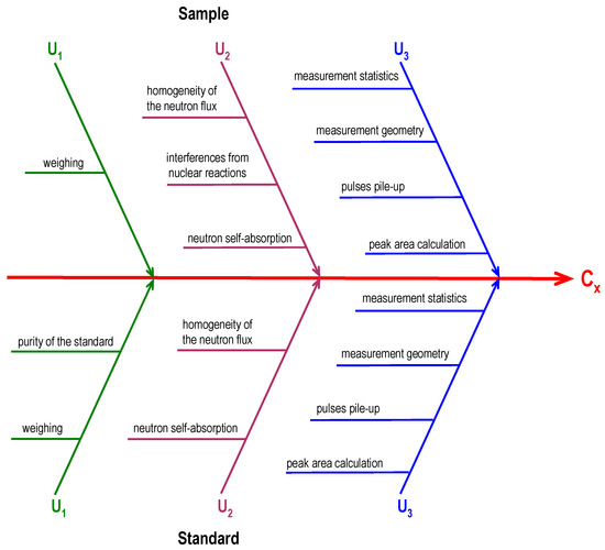 The Ishikawa diagram for the analytical procedure in which the INAA technique was applied. Cx is the content of the given analyte in the analyzed material [34].