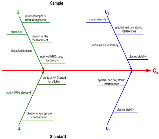 The Ishikawa diagram for the analytical procedure applying the ICP-MS technique. Cx is the content of the given analyte in the analyzed material [34].
