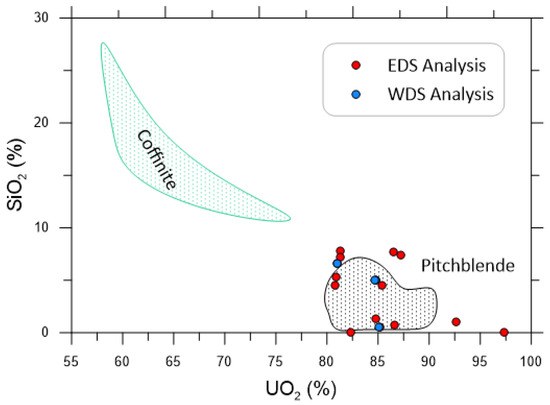 3.3. Microprobe Analysis of Uranium Inclusions