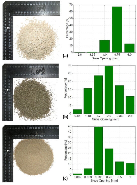 Sand grades showing (a) the coarse grade, (b) the medium grade and (c) the fine grade. Reproduced with permission from [45]; published by Elsevier, 2023.