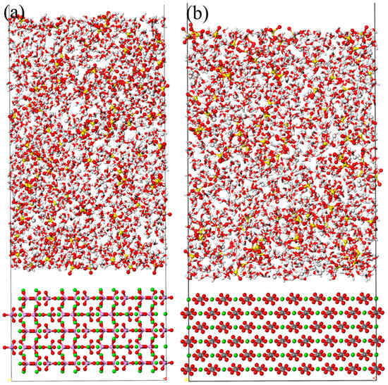The constructed mineral–H2SO4 solution system model. (a) Fluorapatite–H2SO4 solution system; (b) dolomite–H2SO4 solution system.