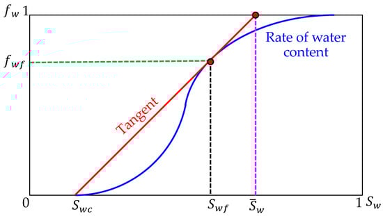 where is the water content %, is the irreducible water saturation %, is the increase rate of the water content %, and A and b are coefficients that are generally mainly influenced via rock and fluid properties, such as viscosity, temperature, pore structure, and wettability.