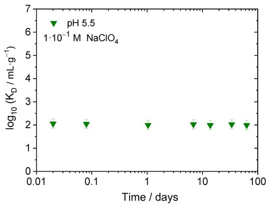 where [Cd]0 is the initial Cd concentration (in Bq/L or M), [Cd]eq is the final Cd equilibrium concentration in solution (in Bq/L or M), V is the volume of the suspension (in mL), and m is the mass of sorbent (in g).