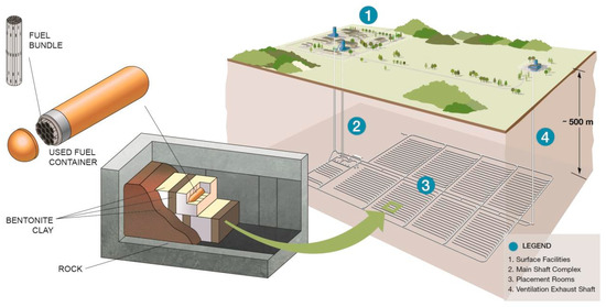 - NWMO. Deep Geological Repository Conceptual Design Report Crystalline/Sedimentary Rock Environment. NWMO Report APM-REP-00440-0015 R001. 2016. Available online: https://www.nwmo.ca/en/Reports (accessed on 1 May 2023).