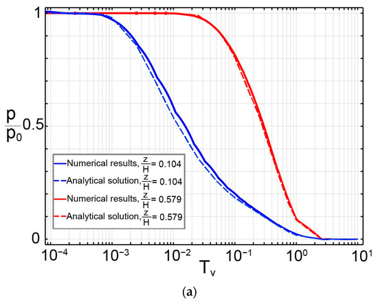 Equations (7) and (8) are equivalent to Terzaghi’s [24]. The analytical solution for the temporal and spatial evolution in excess hydraulic pore fluid pressure may be expressed as follows [29]:
