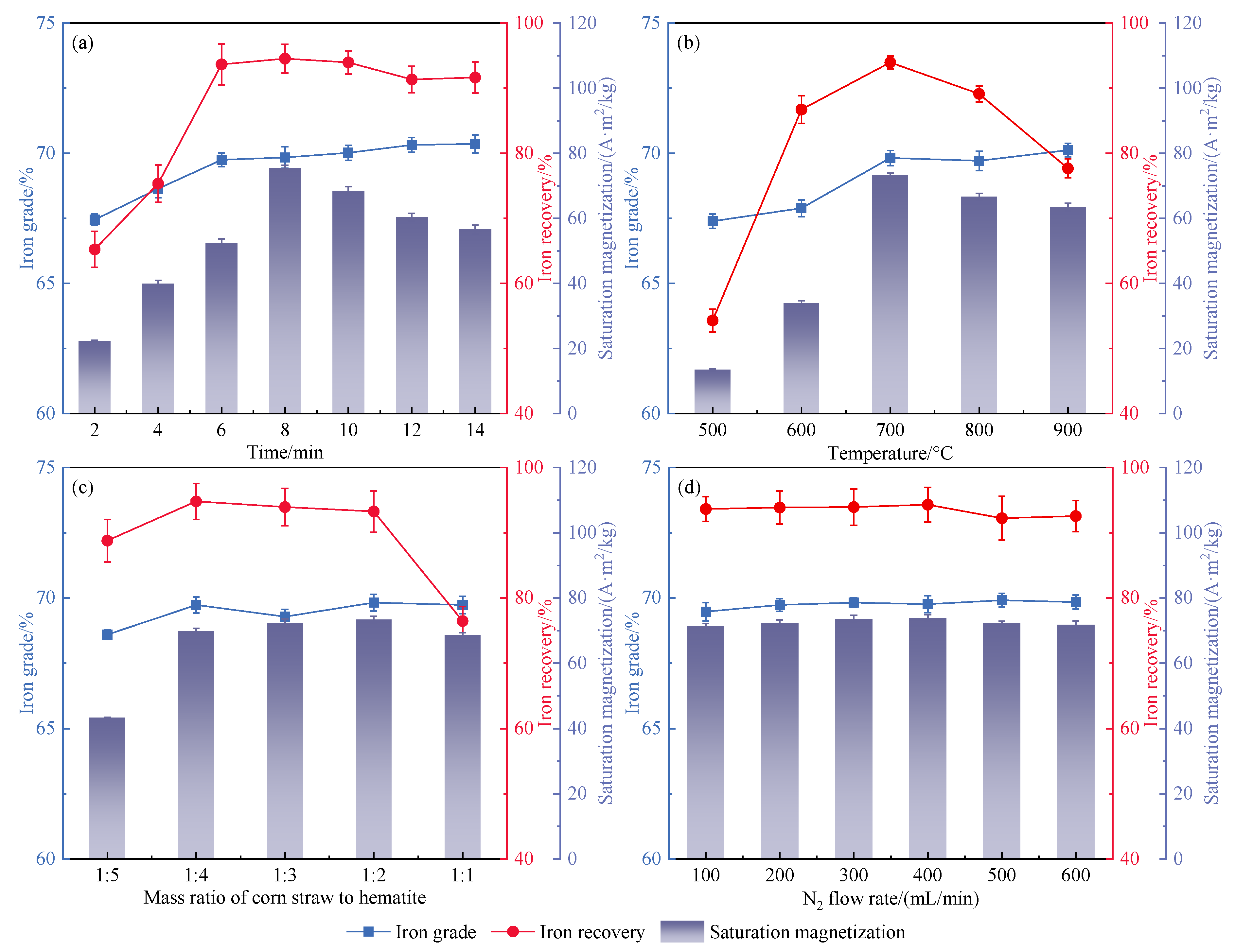 Zhang, Q.; Sun, Y.; Jin, G.; Cao, Y.; Han, Y. Waste Corn Straw as a Green Reductant for Hematite Reduction Roasting: Phase Transformation, Microstructure Evolution and Process Mechanism. Minerals 2023, 13, 1541. https://doi.org/10.3390/min13121541