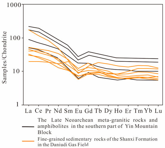 Chondrite-normalized REE patterns of the investigated fine-grained sedimentary rocks refer to Taylor and McLennan, (1985) [81], and the data of amphibolites in the southern part of Yin Mountain Block from Duan, (2021) [83].
