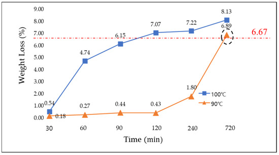 Weight losses of APT with drying time at 90 °C and 100 °C.
