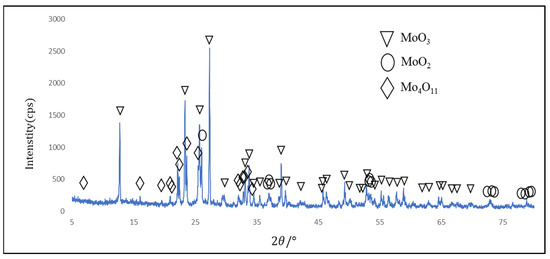 - Koo, W.B.; Yoo, K.; Kim, H. The Hydrogen Reduction Behavior of MoO3 Powder. Resour. Recycl. 2022, 31, 29–36. [Google Scholar] [CrossRef]