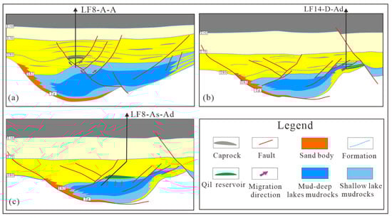 Distribution map of the oil–source fault and non-oil–source fault in seismic profile (the location of the seismic section is shown in Figure 1c B-B’).