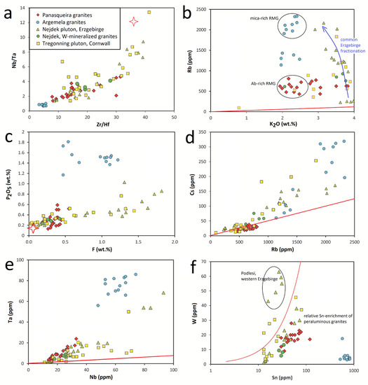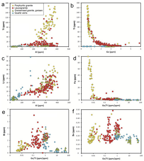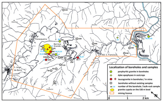 Breiter, K.; Ďurišová, J.; Korbelová, Z.; Vašinová Galiová, M.; Hložková, M. Granite Pluton at the Panasqueira Tungsten Deposit, Portugal: Genetic Implications as Revealed from New Geochemical Data. Minerals 2023, 13, 163. https://doi.org/10.3390/min13020163