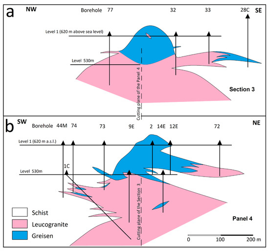 | 3 | Borehole 18D, 150.2–150.4 m | Greisenized granite passed into mica-rich greisen |