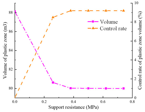 3.2. Control Analysis of Support Resistance on Surrounding Rock Plastic Zone