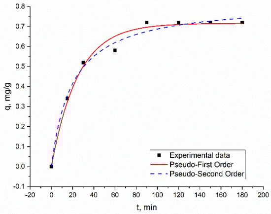 Data obtained experimentally were fitted to pseudo-first-order (PFO) and pseudo-second-order models described by the following equations: