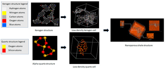 - Ungerer, P.; Collell, J.; Yiannourakou, M. Molecular Modeling of the Volumetric and Thermodynamic Properties of Kerogen: Influence of Organic Type and Maturity. Energy Fuels 2015, 29, 91–105. [Google Scholar] [CrossRef]