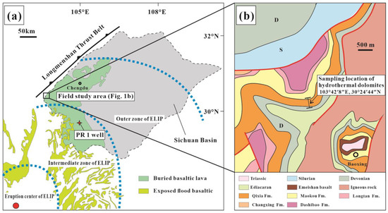 - Zheng, H.; Ma, Y.; Chi, G.; Qing, H.; Liu, B.; Zhang, X.; Shen, Y.; Liu, J.; Wang, Y. Stratigraphic and Structural Control on Hydrothermal Dolomitization in the Middle Permian Carbonates, Southwestern Sichuan Basin (China). Minerals 2019, 9, 32. [Google Scholar] [CrossRef]
