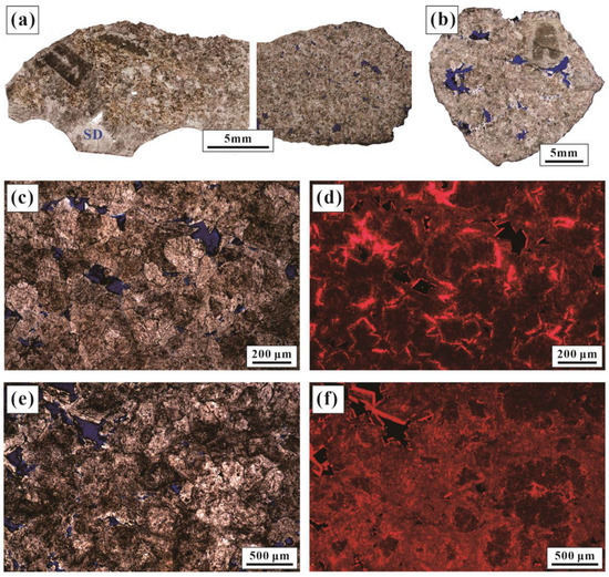 - Longmenshan orogenic stage (Figure 9d): In the Late Triassic, the Longmenshan orogeny occurred in the western margin of the Sichuan Basin [24]. The strong thrust caused many strata faults, which could also provide channels for high-temperature marine fluids to circulate, finally causing hydrothermal dolomitization in Baoxing and the surrounding areas proximal to the orogenic belt. Since the PR1 well is situated at a larger distance from the Longmenshan Orogenic Belt, the hydrothermal dolomite in this section does not record this tectonic thermal event.
