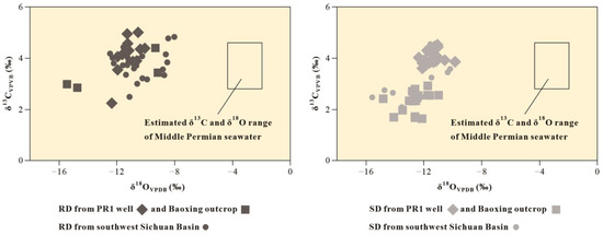 - RDs and SDs from different areas of the Qixia Formation have similar δ13C and δ18O values, suggesting that the diagenetic fluids in the southwestern Sichuan Basin were similar in nature. The δ13C, δ18O, strontium isotope, and REE data all indicate that the diagenetic fluids were mainly derived from marine hydrothermal fluids.