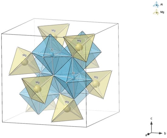 Spinel minerals belong to a large group of compounds with cubic symmetry (space group Fdm). “Normal” spinel is usually represented by the formula AB2O4, where A (Mg, Fe2+, Zn, Mn, Ni, Co, Cu, Ge) and B (Al, Fe3+, Cr, V, Ti) cations generally occupy the tetrahedral coordination (T) and octahedral coordination (O) (Figure 1). “Invert” spinel is described as B(AB)O4 with an octahedral–tetrahedral disorder of A and B cations. The intermediate combination of both is considered “disordered”. The inversion parameter describes the degree of disorder and varies from 0 (completely normal) to 1 (completely inverted). Most gem spinels are primarily the “normal” spinel MgAl2O4 [,,,,].